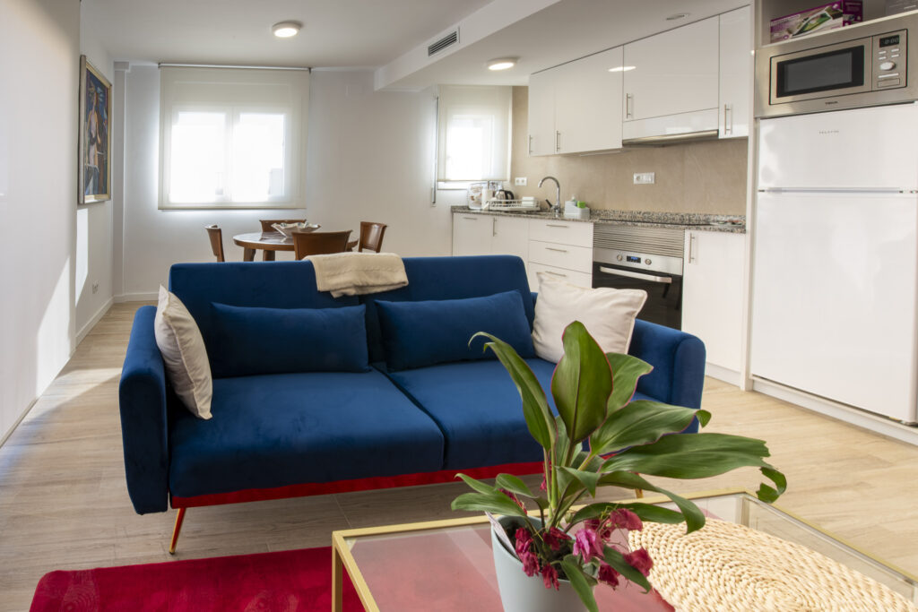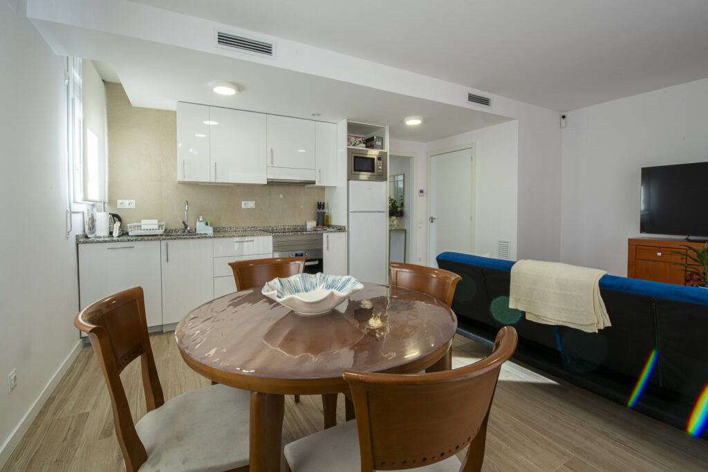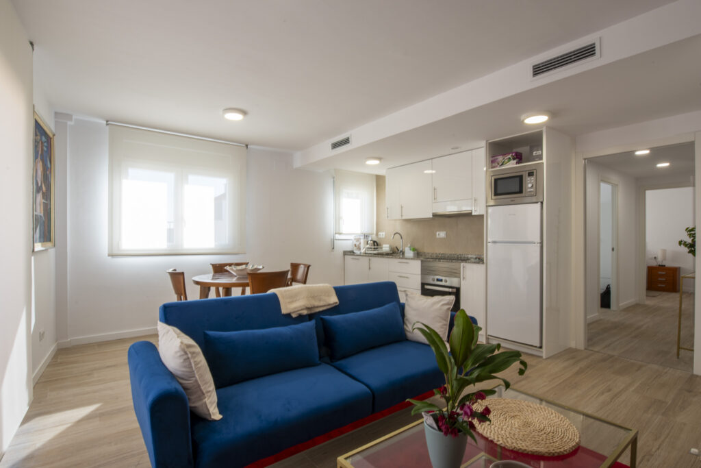 Interiores Apartamentos funcionales, bien equipados, silenciosos y modernos. Zonas de trabajo amplias y diseño sobrio y profesional.